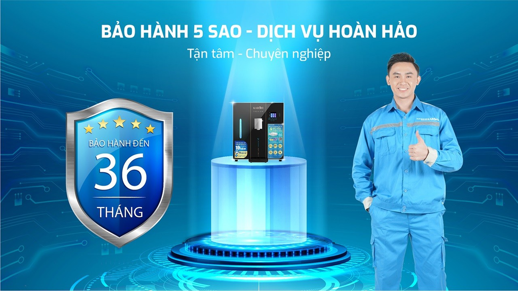 Karofi thực hiện chính sách bảo hành lên đến 36 tháng, cam kết mang lại trải nghiệm tuyệt vời nhất cho quý khách hàng để an tâm sống khỏe.