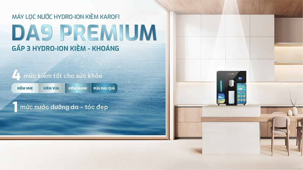 Vượt lên trên khái niệm lọc nước thông thường, Karofi DA9 PREMIUM kiến tạo chuẩn mực mới về nguồn nước sau lọc sạch khỏe và giàu giá trị chăm sóc da, tóc. Công nghệ đột phá giúp tăng gấp 3 lần Hydro-ion kiềm và khoáng chất, linh hoạt 4 chế độ kiềm tối ưu cùng 1 mức nước chuyên biệt chăm sóc da và tóc, mang đến chuẩn sống khỏe đẹp trọn vẹn.