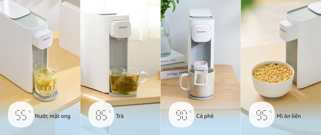 Người dùng có thể dễ dàng lựa chọn mức nhiệt độ nước nóng từ 45℃ – 95℃, phù hợp cho nhiều nhu cầu khác nhau như pha sữa, pha trà, cà phê hay mì ăn liền. Chỉ với một thao tác chạm, nước nóng tinh khiết sẽ sẵn sàng trong tích tắc.