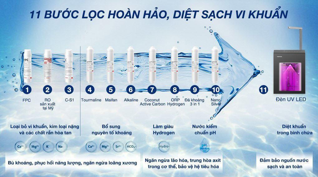 - Máy lọc nước Toshiba lọc được nguồn nước máy, nước thủy cục.