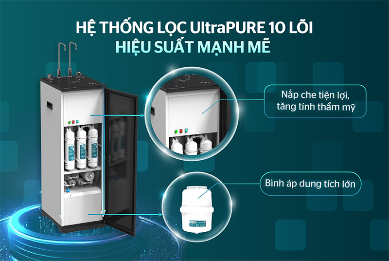 Hệ thống lọc 10 lõi chia làm 3 cấp, lọc sạch toàn diện