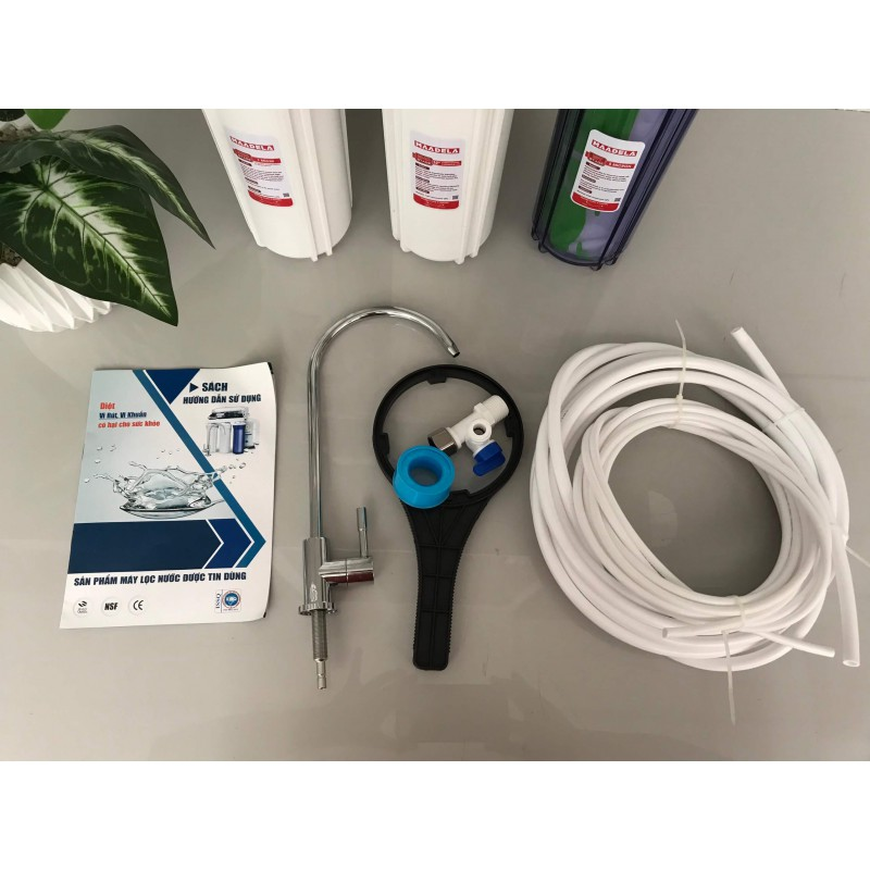- Lõi 5: Lõi Post cacbon nhập khẩu Hàn Quốc hấp thụ màu, mùi, cân bằng độ PH
