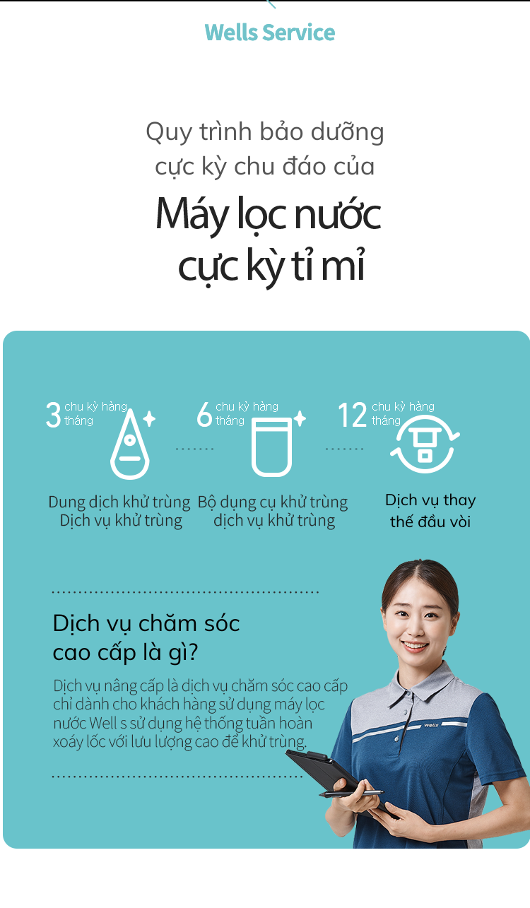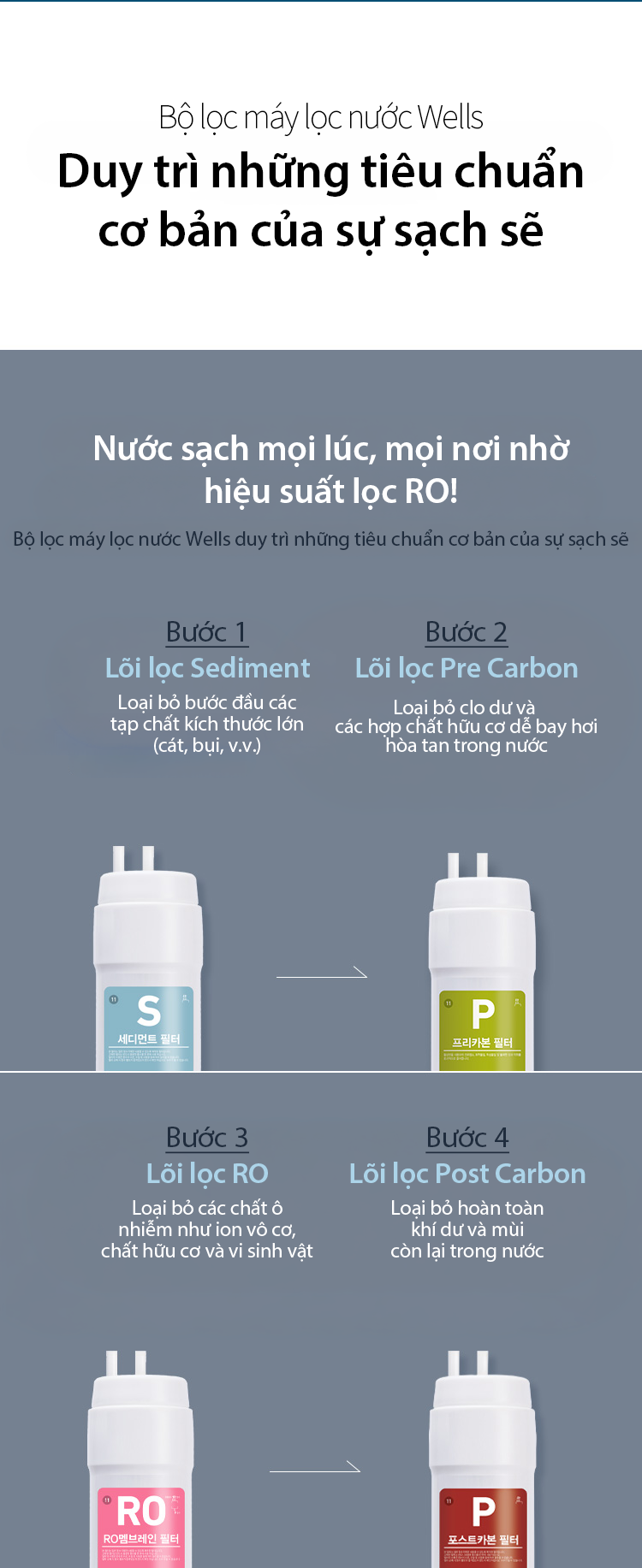 Máy lọc nước Wells sử dụng công nghệ lọc RO giúp loại bỏ các tạp chất, vi khuẩn và kim loại nặng trong nguồn nước.