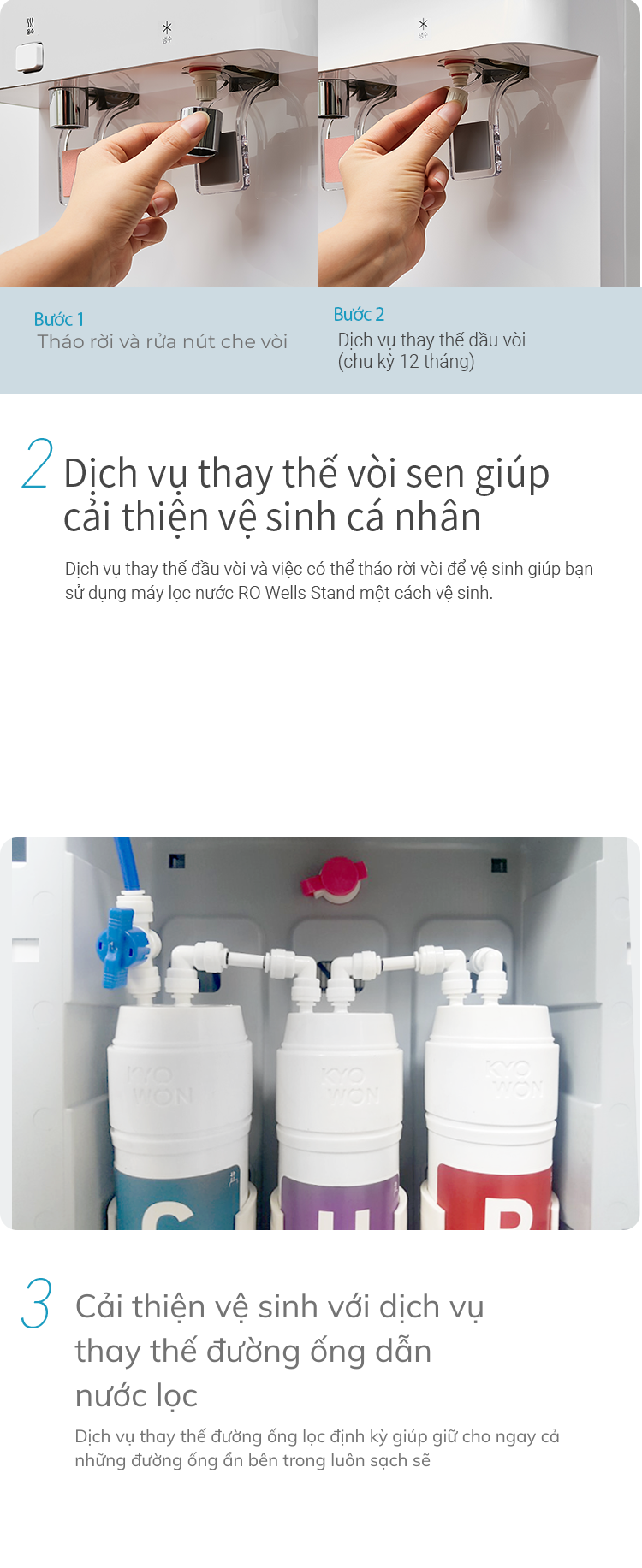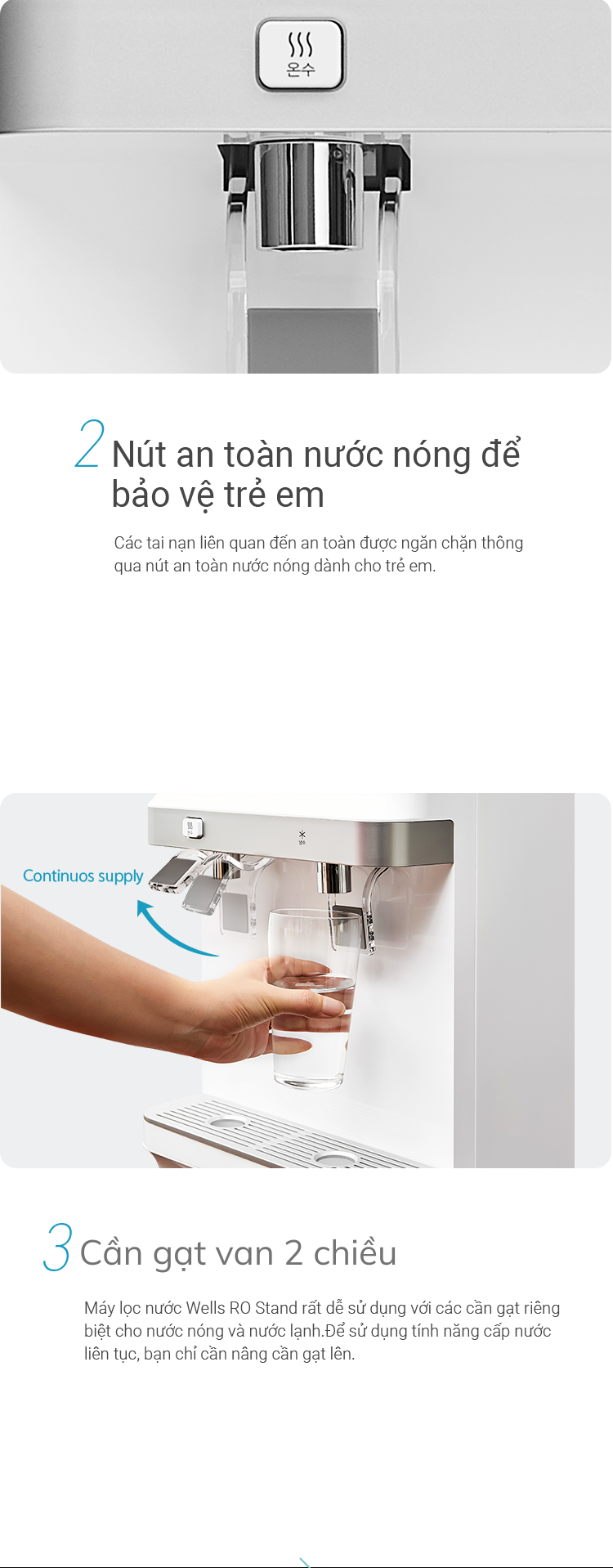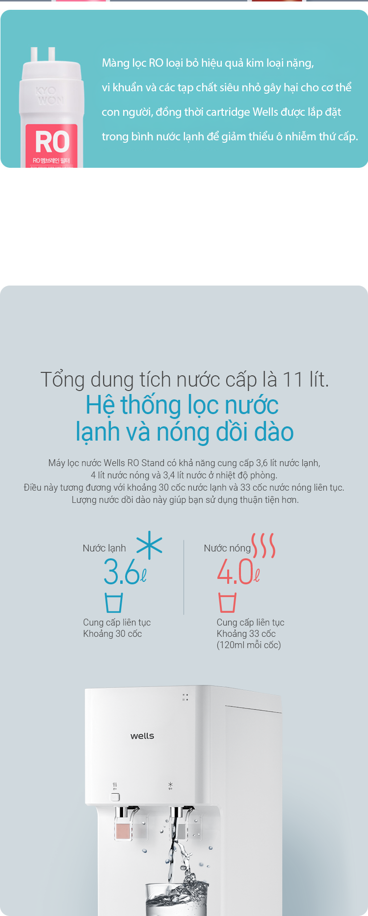Máy lọc nước Wells có khả năng cung cấp nước nóng, nước lạnh và nước nhiệt độ thường.