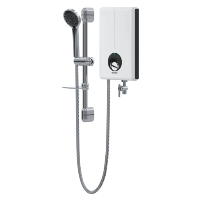 Máy nước nóng trực tiếp tích hợp bơm trợ lực, với núm điều chỉnh công suất vô cấp lên đến mức công suất định mức tối đa. Vòi sen đi kèm có 5 chế độ phun khác nhau, từ nhẹ nhàng đến massage, và có thể điều chỉnh độ cao dễ dàng nhờ thanh trượt. Bơm trợ lực giúp tăng áp lực nước và lưu lượng nước đầu ra. Phù hợp với các khu vực có áp lực nước yếu.