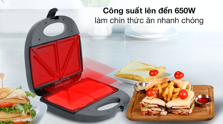 Máy nướng bánh mì có công suất mạnh mẽ lên đến 650W, làm chín thức ăn nhanh chóng, tiết kiệm tối đa thời gian cho người dùng