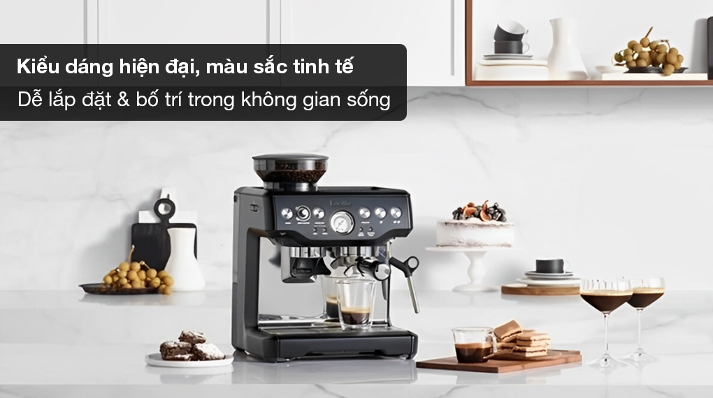 Máy Breville BES870 the Barista Express® có kiểu thiết kế bắt mắt với kích thước tương đối nhỏ gọn nhờ thuộc dòng máy pha cafe bán tự động. Nhờ đó, sản phẩm cho phép người dùng bố trí hiệu quả trong không gian vừa và nhỏ như văn phòng làm việc, khu vực ăn uống của công ty và các hộ gia đình.
