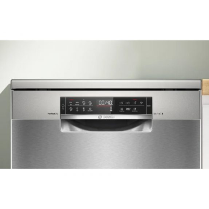Bosch SMS6ZCI85M trang bị 8 chương trình rửa như Auto 45-65°C, Intensive 70°C, Eco 50°C, Short 60°C, Quick 45°C, Glass 40°C, Night 50°C và Pre Rinse/Favourite. Các tính năng bổ trợ gồm Remote Start (khởi động từ xa), ExtraDry (sấy tăng cường), IntensiveZone (vùng rửa mạnh), SpeedPerfect+ (tăng tốc rửa) và chương trình vệ sinh máy.