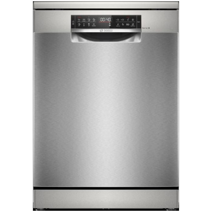 Bosch SMS4HTI16E sở hữu vẻ ngoài hiện đại với gam màu Inox (thép không gỉ) tinh tế, không chỉ bền bỉ mà còn dễ dàng hòa hợp với mọi phong cách nội thất bếp. Kích thước tiêu chuẩn (845 x 600 x 600 mm) giúp máy có thể lắp đặt độc lập hoặc lắp âm tủ để tiết kiệm không gian, mang lại vẻ gọn gàng cho căn bếp.