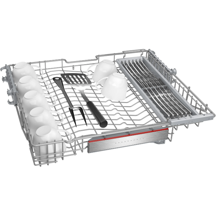Máy sở hữu hệ thống giàn rửa Max Flex Pro cao cấp, mang lại khả năng sắp xếp linh hoạt và bảo vệ tốt hơn cho bát đĩa. Khay thứ 3 Extra Space dành riêng cho dao kéo và vật dụng nhỏ giúp tối ưu diện tích sử dụng.