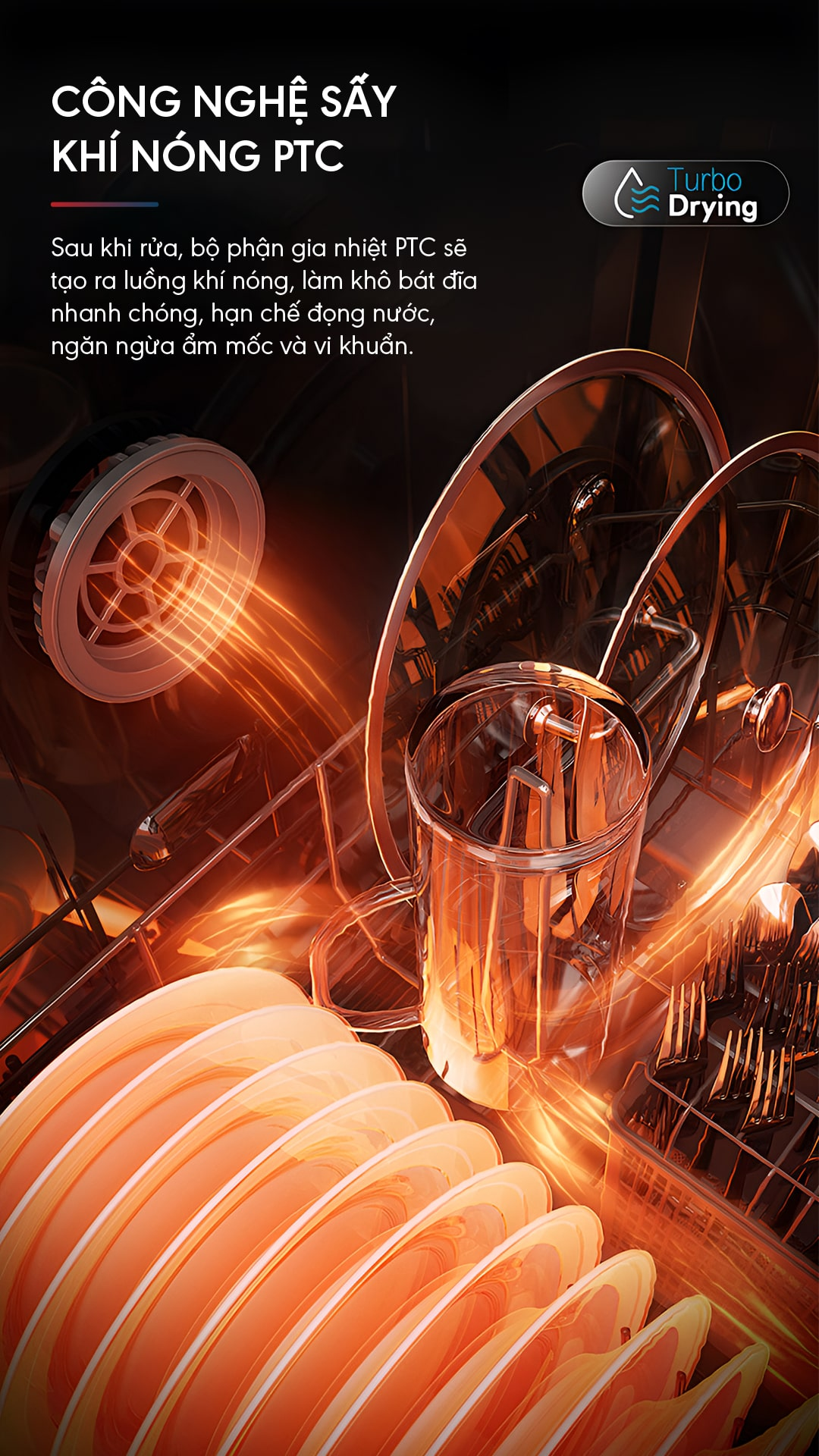 - Chế độ sấy nóng khử trùng ở nhiệt độ cao (PTC)