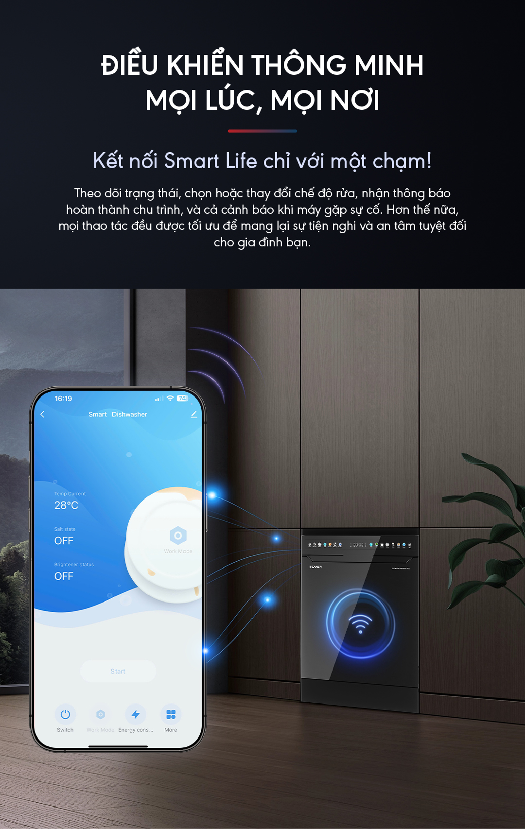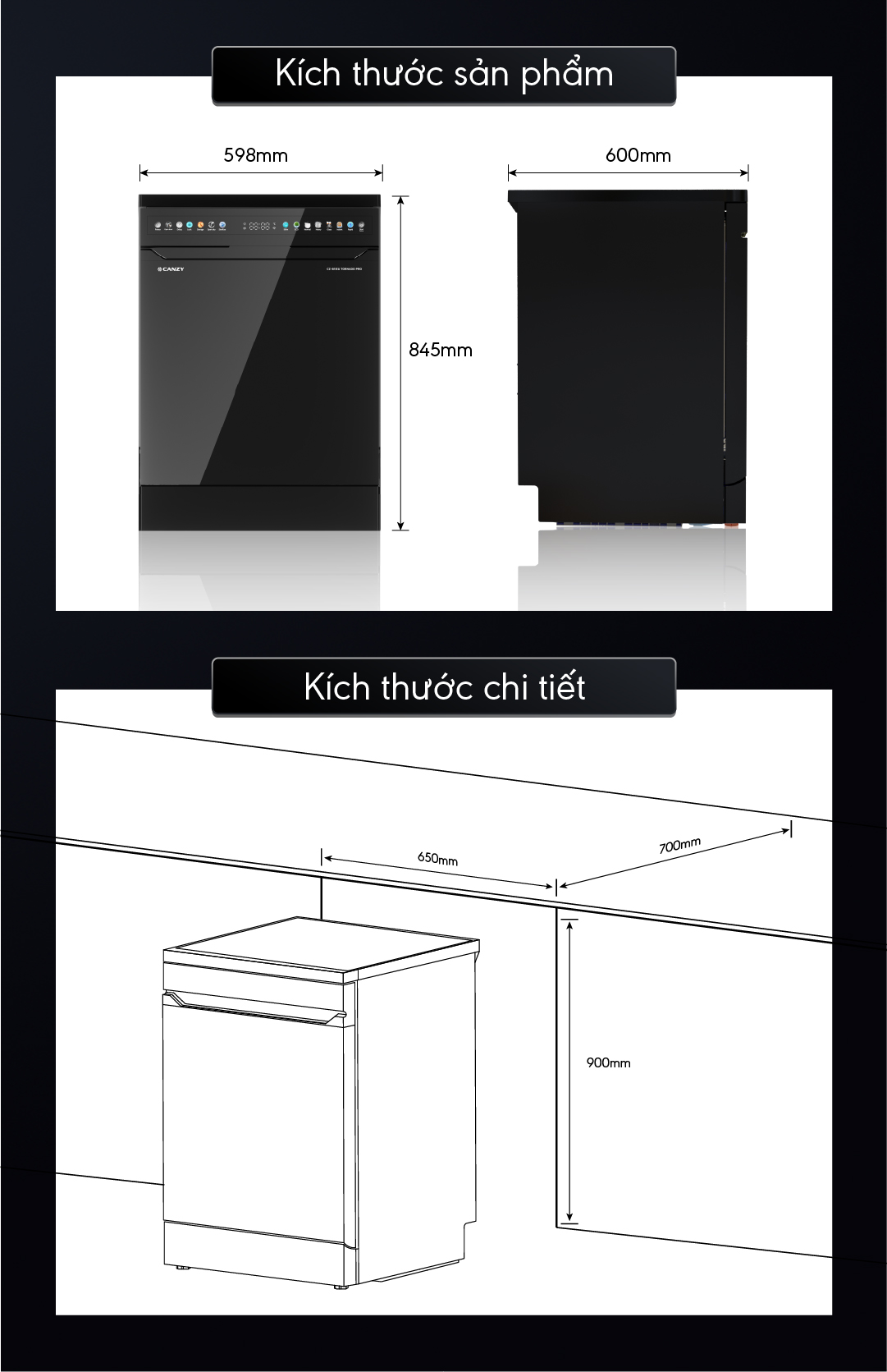 - Máy rửa bát đứng độc lập, có thể đặt âm tủ