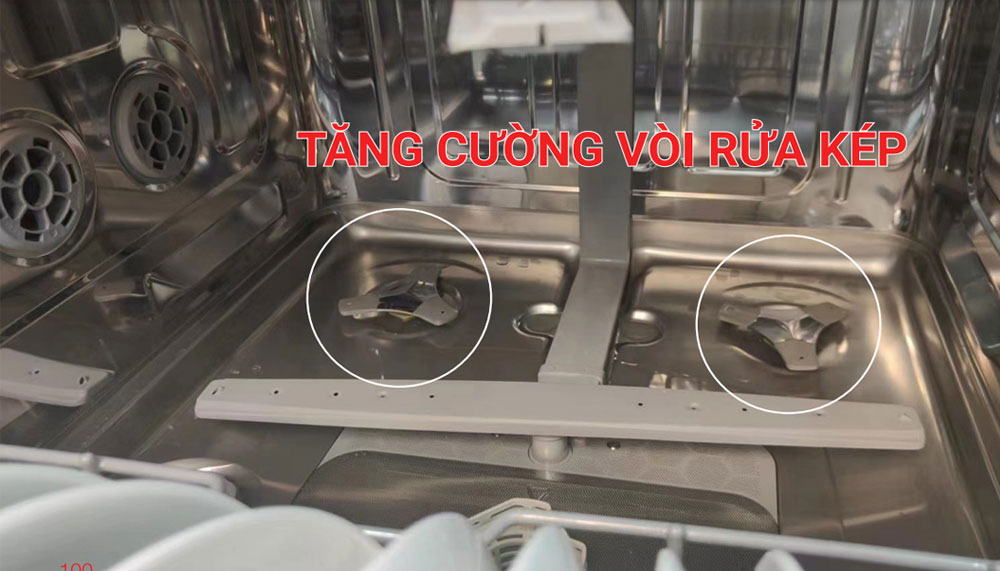 - Vòi rửa kép tăng cường rửa sạch sâu, kể cả những vết bẩn cứng đầu
