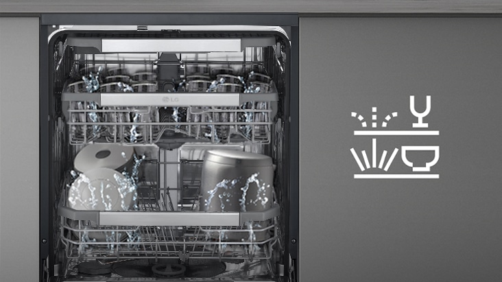 QuadWash™ sử dụng bốn tay đa hướng giúp phun nước đến mọi góc, trong khi chế độ Rửa kép cho phép bạn chọn các mức áp suất khác nhau cho từng giá đựng