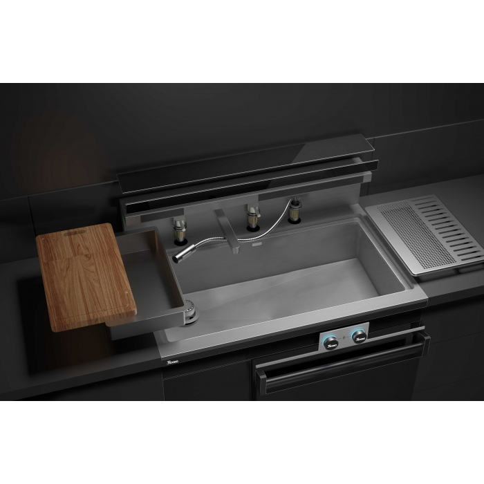 Máy rửa chén Texgio TGUMF11S được trang bị một hệ thống vòi rút bằng inox 304 cao cấp, với khả năng linh hoạt xoay chuyển, giúp bạn dễ dàng thao tác trong mọi góc độ. Vòi rút không chỉ có độ bền cao, chống ăn mòn mà còn mang lại vẻ đẹp sáng bóng, hiện đại cho căn bếp. Đi kèm với vòi là chậu rửa đơn ngăn rộng rãi, đủ dung tích để rửa sạch lượng lớn chén đĩa và thực phẩm một cách nhanh chóng. Thớt thái tiện lợi được tích hợp trực tiếp, giúp bạn tiết kiệm không gian và thời gian trong việc chuẩn bị nguyên liệu, nâng cao hiệu quả làm việc trong bếp.