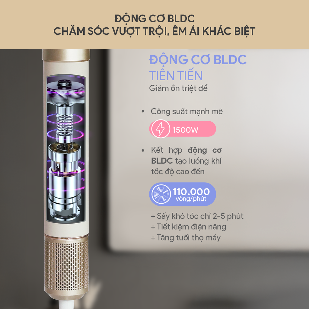 - Sấy khô tóc chỉ 2–5 phút