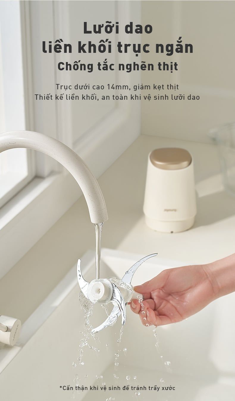 Lưỡi dao được nâng cấp thiết kế liền khối với trục ngắn, giúp hạn chế tình trạng thực phẩm lọt vào bên trong khớp xoay gây tắc nghẽn. Cấu tạo này còn giúp việc vệ sinh lưỡi dao trở nên nhanh chóng và dễ dàng hơn bao giờ hết, đồng thời giảm nguy cơ bị thương khi tháo lắp, đảm bảo an toàn tuyệt đối cho người sử dụng.