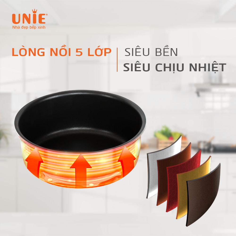 Lòng nồi Unie UN-630 cấu tạo 5 lớp siêu bền, chống móp méo