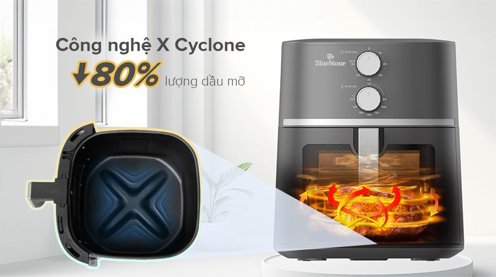 Nồi chiên không dầu BlueStone AFB-5856 sở hữu công nghệ chiên đối lưu X Cyclone với thiết kế đáy hình chữ X là giải pháp nấu nướng hiện đại giúp bạn chế biến những món ăn chín đều, ngoài giòn trong mềm mà vẫn đảm bảo sức khỏe, tiết kiệm thời gian và công sức tối đa.