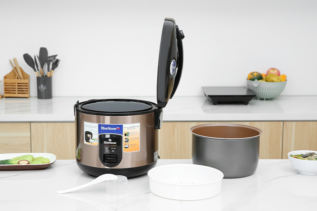 Nồi cơm nắp gài BlueStone 2.8 lít RCB-5538 có kiểu dáng hiện đại, dung tích 2.8 lít phù hợp gia đình 6 - 8 thành viên, lòng nồi phủ chống dính nấu cơm an toàn, dễ làm sạch, dễ sử dụng, là thiết bị hữu ích giúp phục vụ những bữa cơm nóng hổi cho cả gia đình.