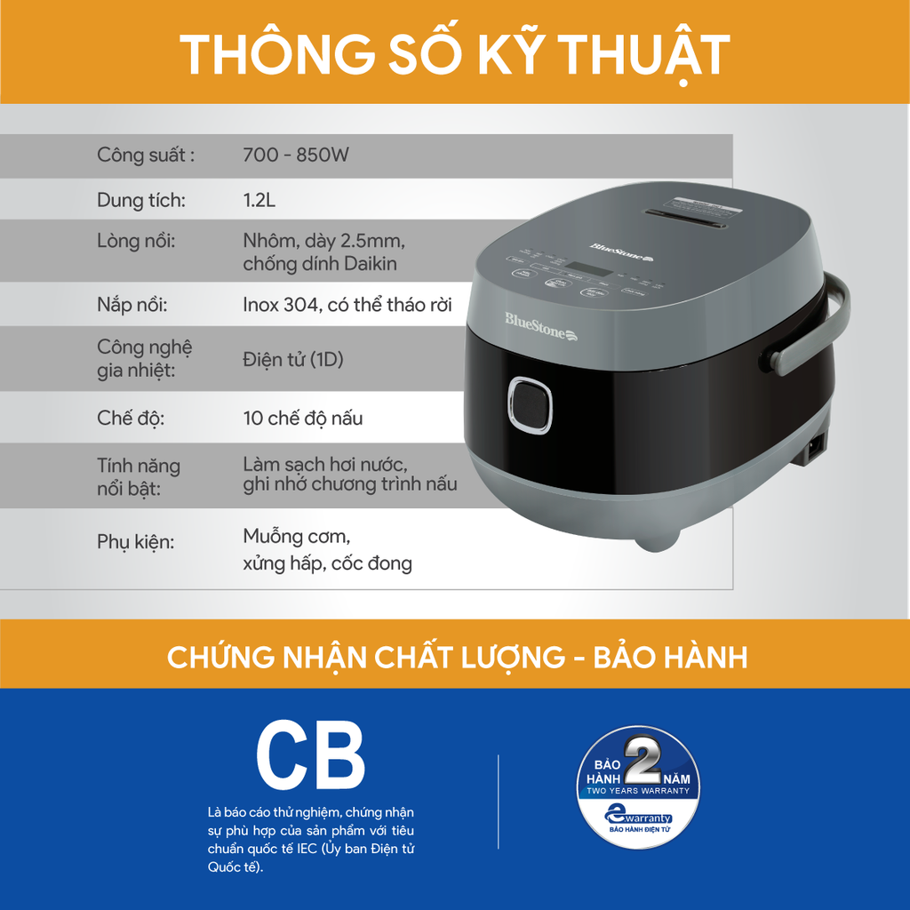 Nồi cơm điện tử BlueStơn RCB-5947 được bảo hành chính hãng 24 tháng