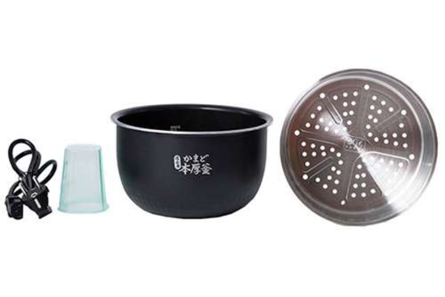 Đi kèm với nồi là dây nguồn 111 cm, xửng hấp bằng thép không gỉ, cốc đong, muỗng cơm, muỗng canh