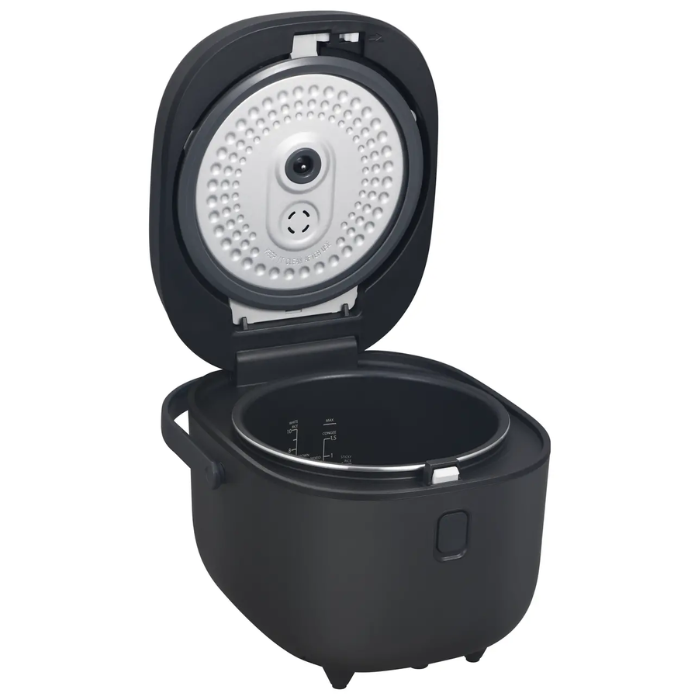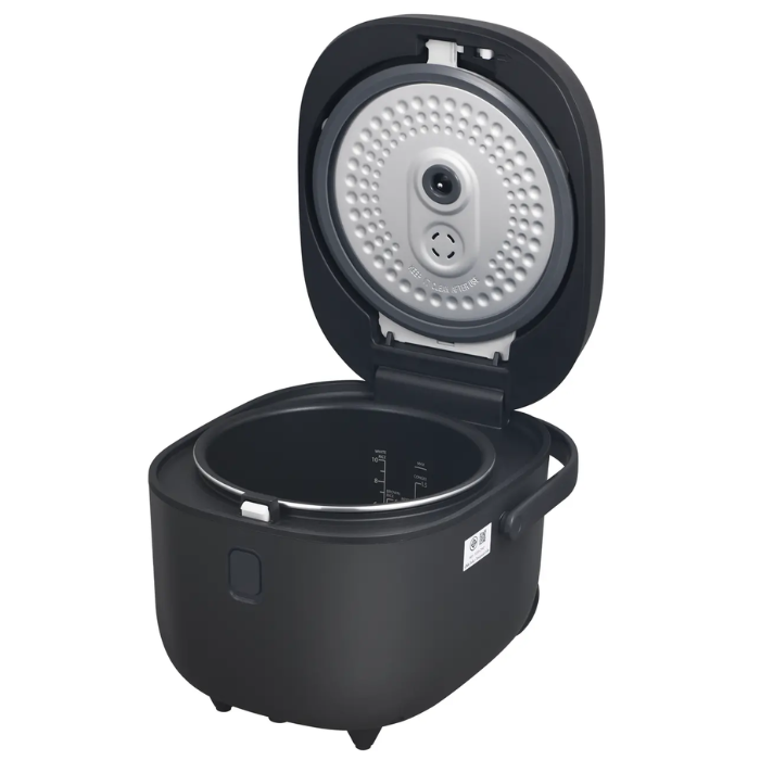 - Với màu xám đậm trung tính cùng kiểu dáng sang trọng, hiện đại, chiếc nồi cơm điện này phù hợp với đa số các không gian bếp. Nồi còn được trang bị quai xách giúp người dùng tiện di chuyển.