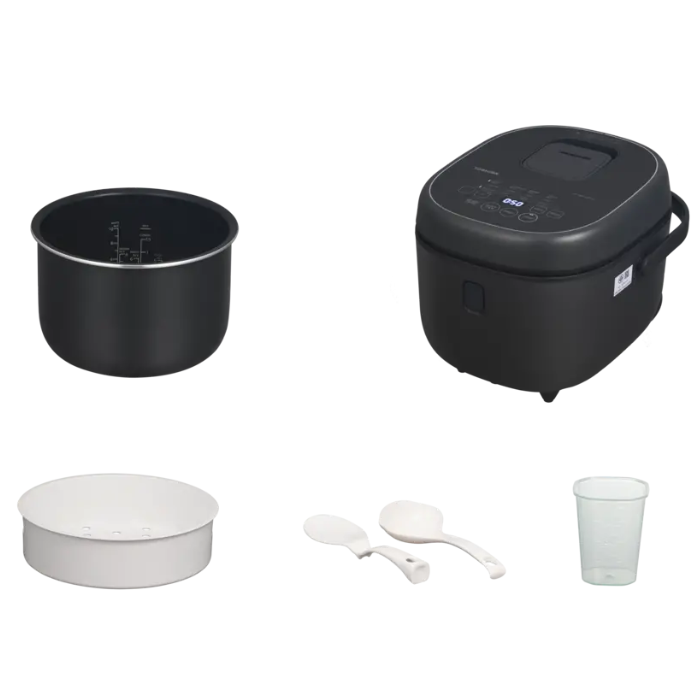 - Phụ kiện đi kèm bao gồm cốc đong, muỗng cơm và xửng hấp.