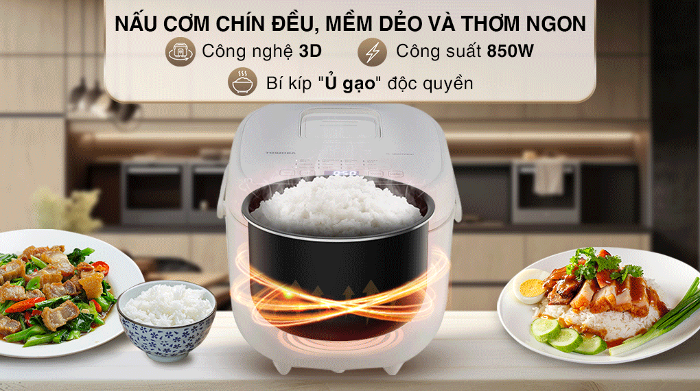 - Bí kíp độc quyền "Ủ gạo" của Toshiba: mỗi hạt gạo đều được chăm sóc tỉ mỉ qua các giai đoạn gồm hâm nóng, ngâm, gia nhiệt, đun sôi, ninh và giữ ấm tự động. Điều này kích thích Enzyme trong gạo bung tỏa hương thơm, mang đến hạt cơm mềm dẻo thơm ngon.