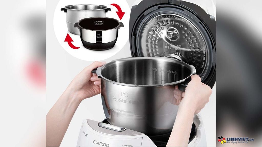 Nồi cơm cao tần Cuckoo CHAS109FW 1.8L với lòng nồi inox mang đến một thiết kế sang trọng và ấn tượng. Vỏ nồi bóng loáng không chỉ tạo cảm giác hiện đại mà còn bền chắc, giúp hạn chế bám bẩn và trầy xước. Điều này làm cho việc bảo quản và vệ sinh nồi trở nên dễ dàng hơn.