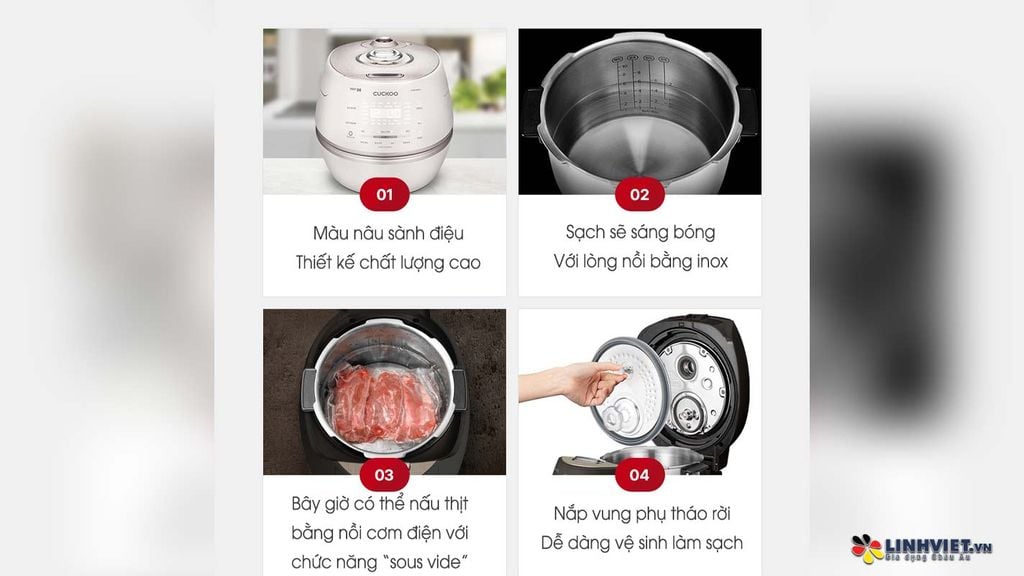 Ngoài ra, nồi còn hỗ trợ nấu nhanh, nấu áp suất, nấu ở nhiệt độ cao, nấu nhanh gạo nếp, gạo hỗn hợp, cũng như các chức năng hâm nóng và giữ ấm.