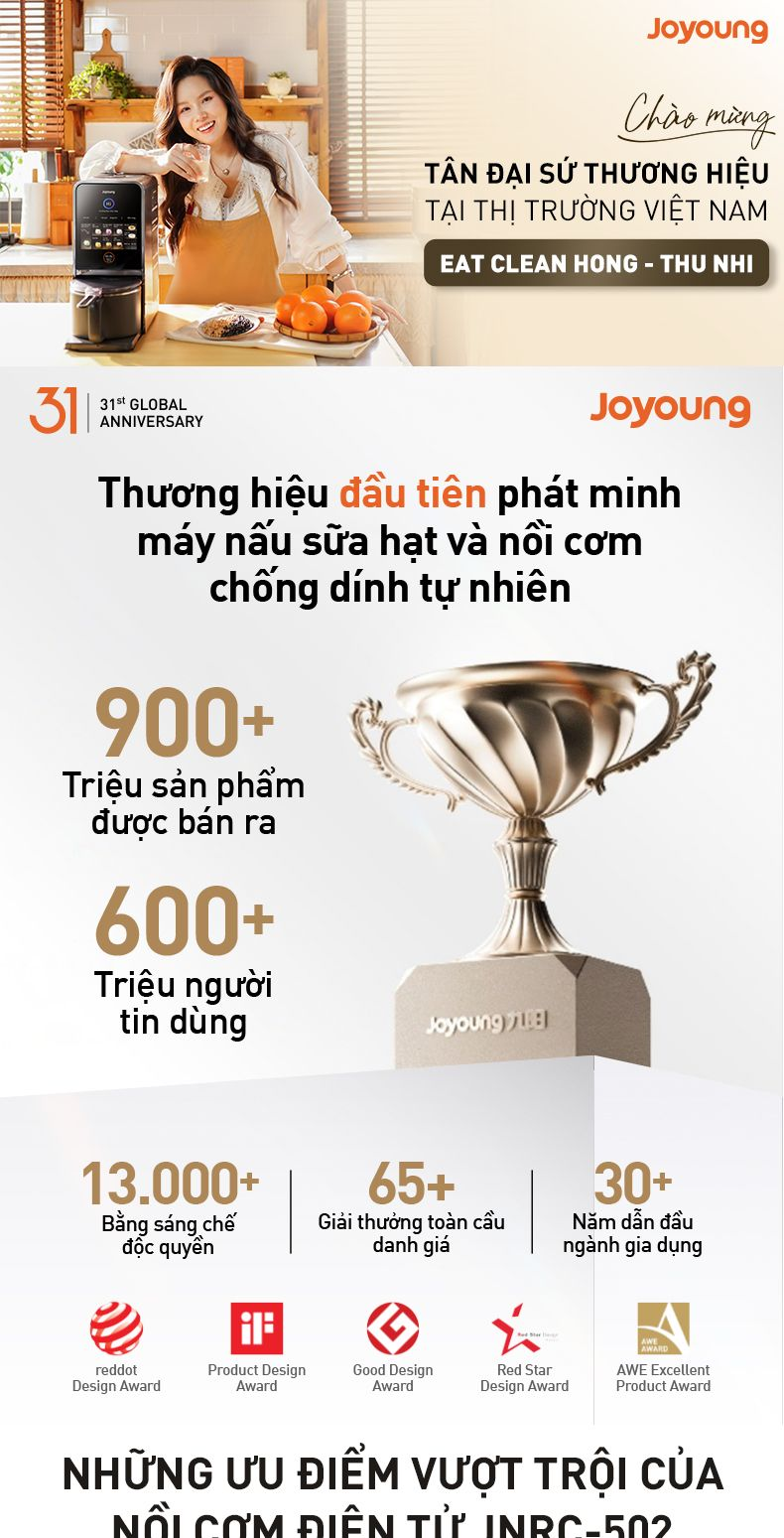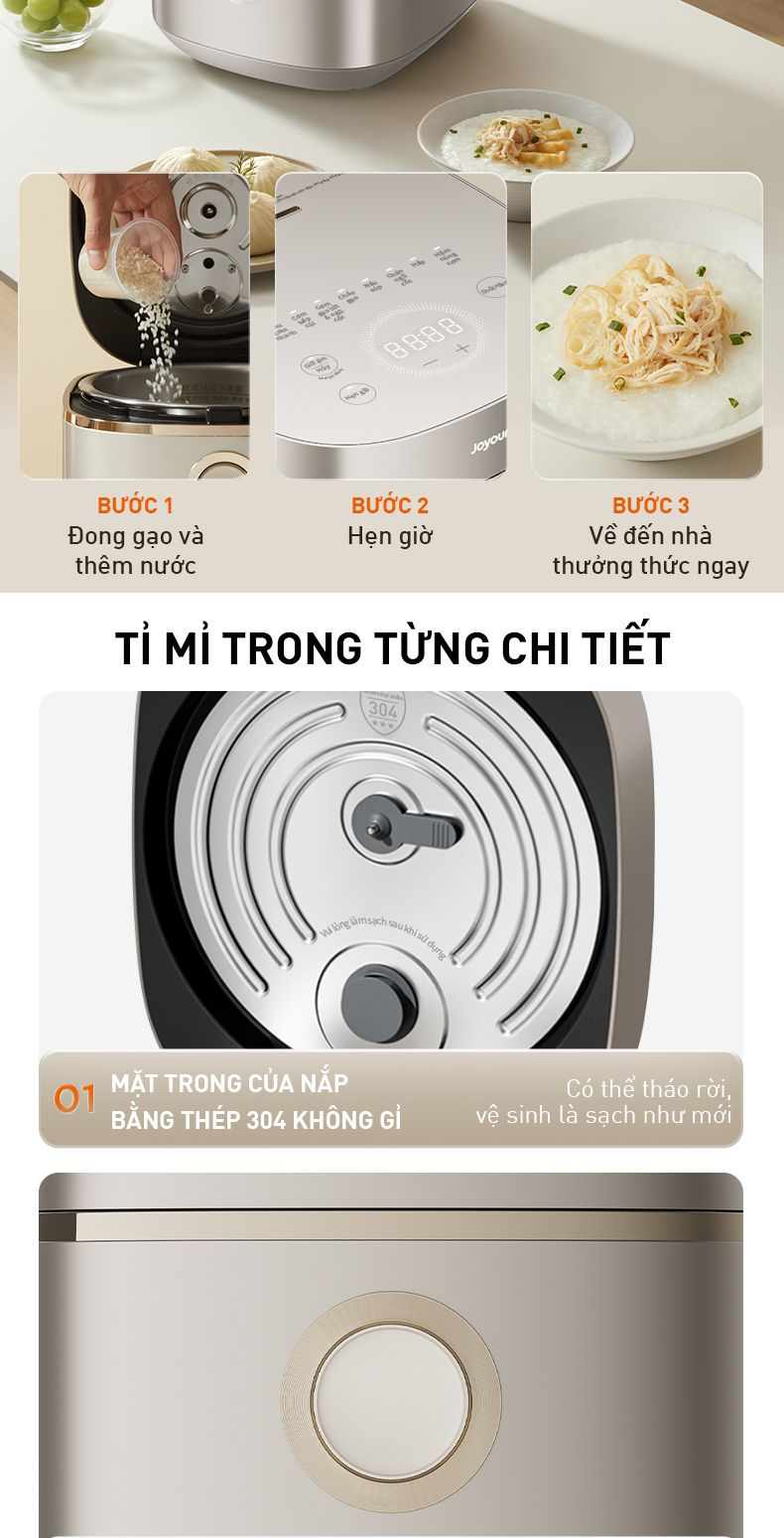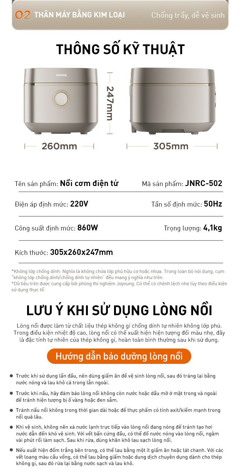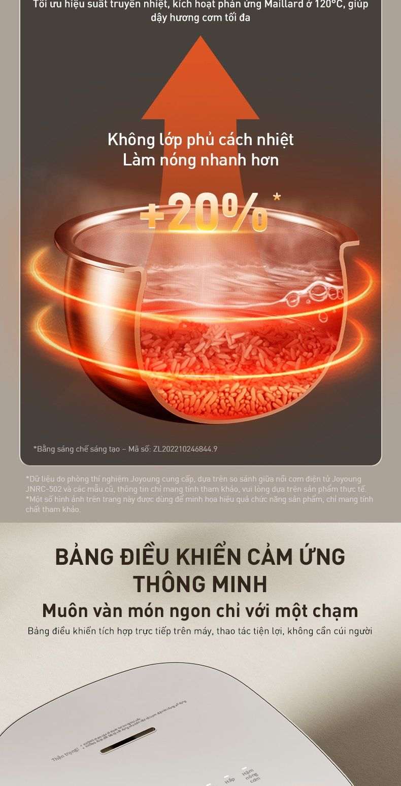 Nồi cơm điện tử Joyoung JNRC-502 sẽ mang đến gia đình bạn những bữa ăn ngon, chất lượng với hạt cơm đạt chuẩn 5A về độ thơm, dẻo, dai, tơi và đều. Đồng thời, công nghệ màng nước vi điểm chống dính tự nhiên còn giúp hạn chế tình trạng bám dính vượt trội