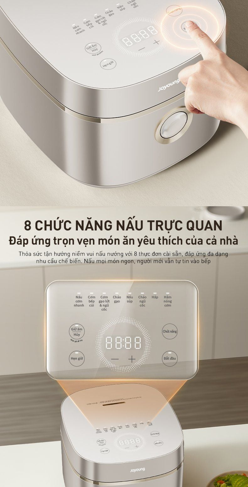 - 8 chức năng nấu trực quan: Nấu mọi món ngon, đáp ứng đa dạng nhu cầu chế biến, người mới vẫn tự tin vào bếp.