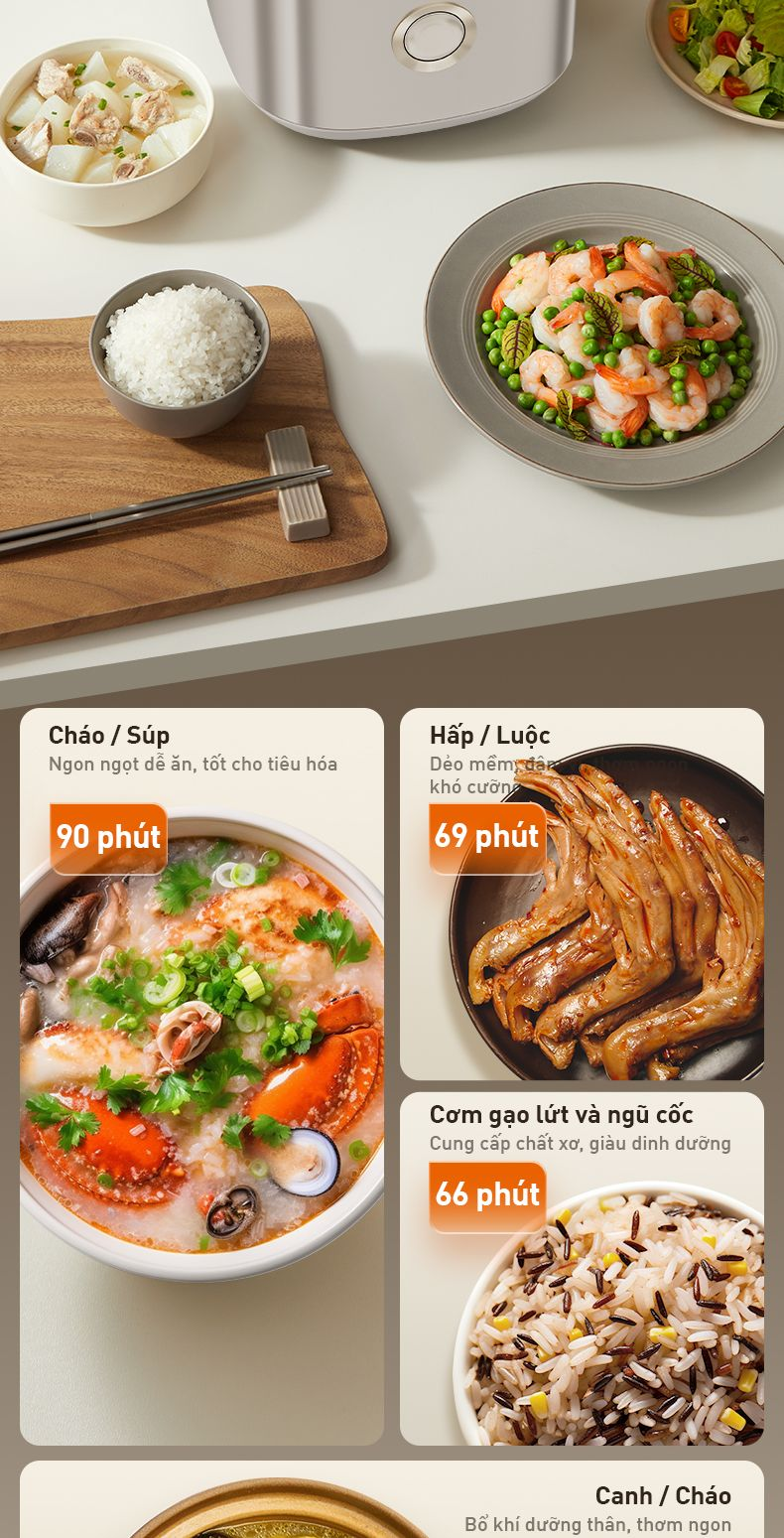 - Hẹn giờ thông minh 24 tiếng: Chủ động thời gian nấu, không cần vội nấu.