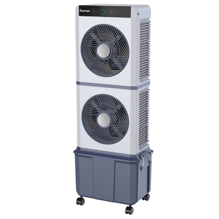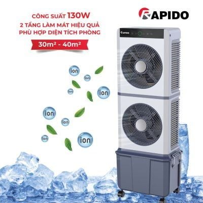 Sản phẩm tích hợp nhiều tính năng ưu việt: lọc không khí bằng ion âm, điều khiển từ xa tiện lợi, cảnh báo cạn nước thông minh và chế độ hẹn giờ linh hoạt. Đặc biệt, Twin D được trang bị màn hình hiển thị LED rõ nét, thang đo mực nước trực quan cùng hộp đá khô giúp làm mát nhanh hơn. Thiết kế 4 bánh xe di động và thùng nước 30L tháo rời dễ dàng giúp bạn sử dụng và vệ sinh máy một cách thuận tiện.