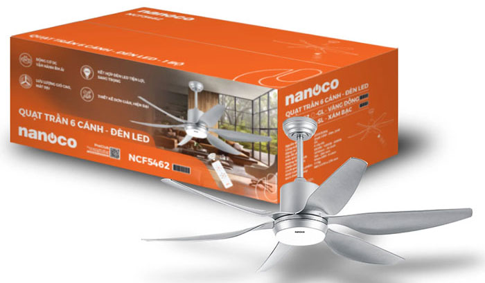 Quạt trần Nanoco NCF5462-SL không chỉ là thiết bị làm mát mà còn là sản phẩm góp phần nâng tầm thẩm mỹ cho không gian sống. Mẫu quạt trần cao cấp này sở hữu thiết kế tinh tế cùng nhiều tính năng hiện đại. Động cơ DC mạnh mẽ, 6 cấp độ gió, đèn LED 3 màu và khả năng tiết kiệm điện tối ưu, sẽ là lựa chọn tuyệt vời cho các gia đình.
