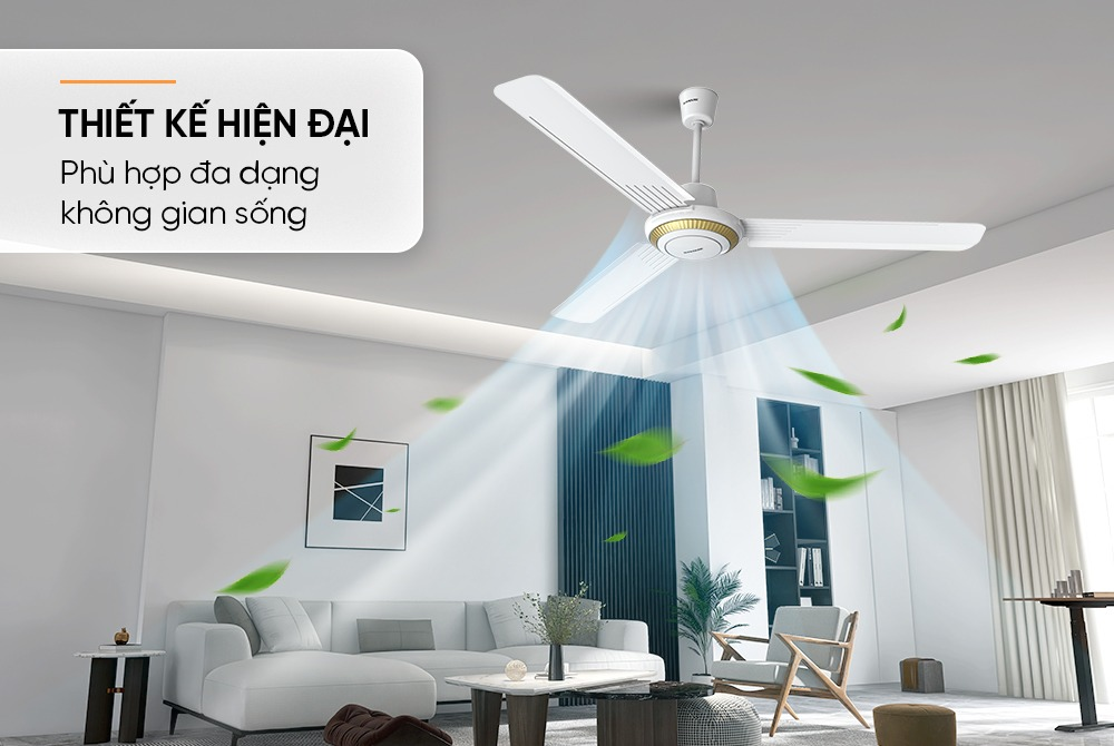 Quạt trần 3 cánh SUNHOUSE SHD7659G sở hữu thiết kế hiện đại, tinh tế với gam màu trắng trang nhã, phù hợp với nhiều phong cách nội thất. Kích thước hợp lý giúp quạt dễ dàng lắp đặt ở đa dạng không gian sống, từ phòng khách, phòng ngủ đến văn phòng làm việc.