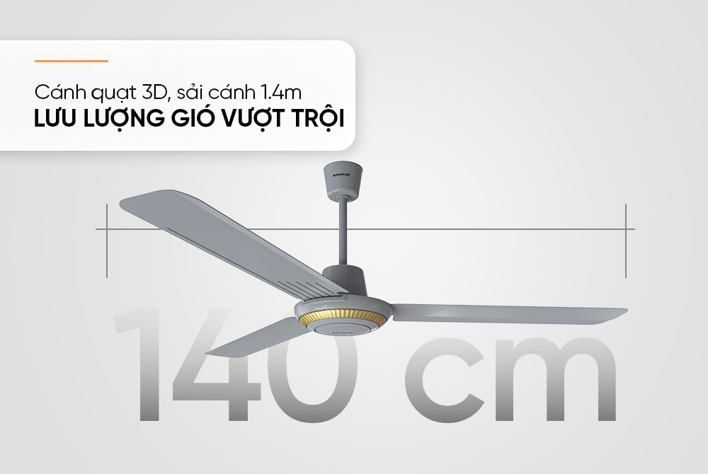Quạt trần 3 cánh SUNHOUSE SHD7659G với đường kính sải cánh 140cm và lưu lượng gió 230 m³/phút, mang đến luồng gió mạnh mẽ và lan tỏa rộng khắp không gian. Nhờ khả năng làm mát nhanh chóng, quạt giúp không khí luôn thông thoáng và thoải mái, lý tưởng cho những ngày hè oi bức.