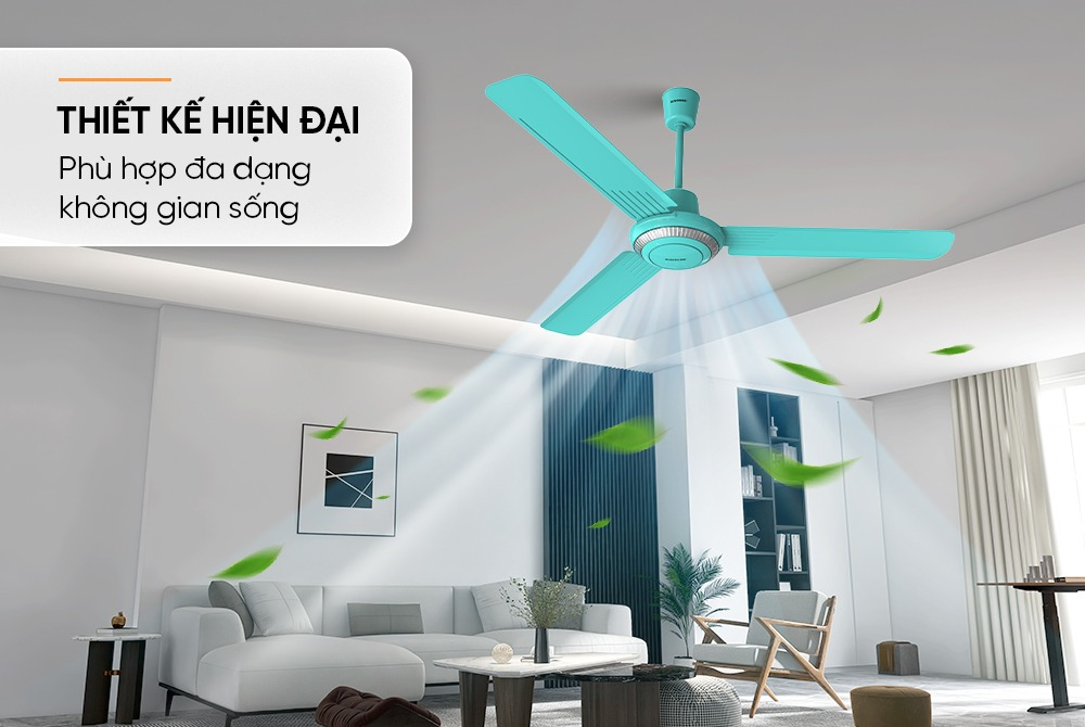 Quạt trần 3 cánh SUNHOUSE SHD7659GR vận hành êm ái với độ ồn không quá 65dB, đảm bảo không gian yên tĩnh ngay cả khi hoạt động ở tốc độ cao. Công suất 75W kết hợp sải cánh rộng 1.4m tạo luồng gió mạnh mẽ, lan tỏa mát mẻ khắp không gian, mang lại cảm giác sảng khoái và thoải mái tức thì cho cả gia đình.