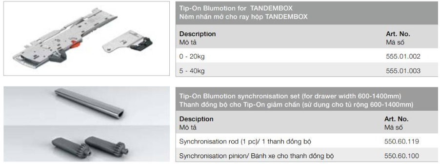 Chức năng giảm chấn, có thể tích hợp nhấn mở