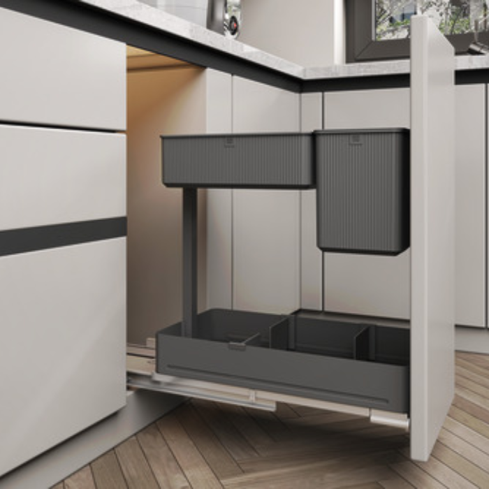 Tối ưu hóa không gian: Biến khu vực tủ dưới thường bị lãng phí thành không gian lưu trữ giá trị.