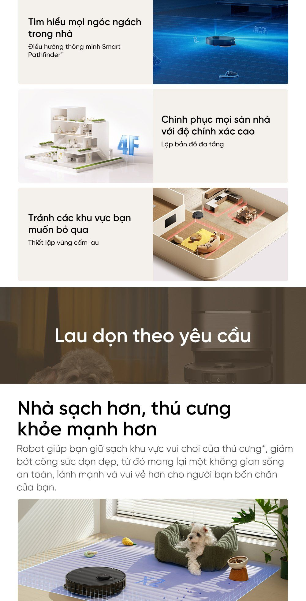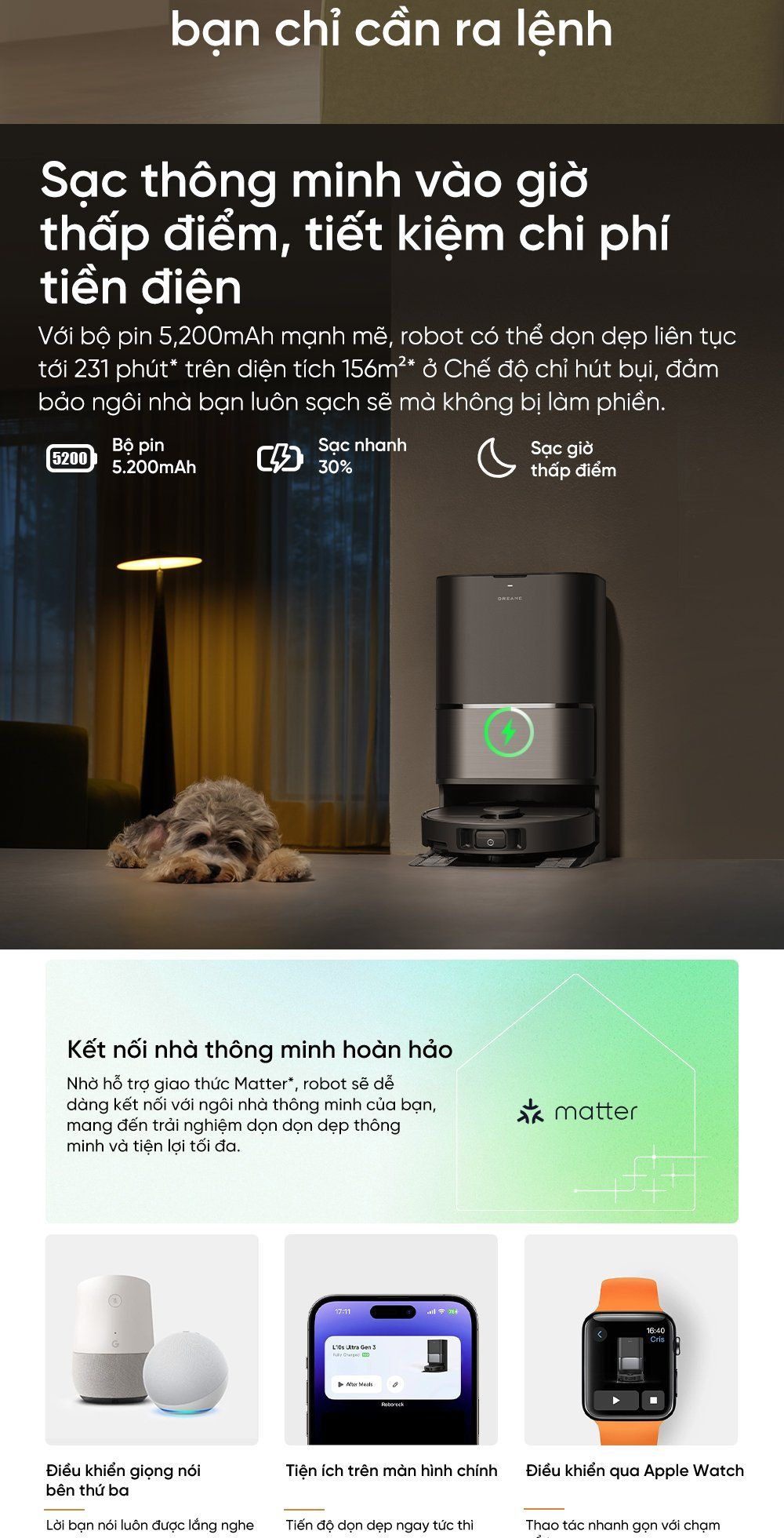- Kết nối nhà thông minh hoàn hảo: Nhờ hỗ trợ giao thức Matter, robot sẽ dễ dàng kết nối với ngôi nhà thông minh của bạn, mang đến trải nghiệm dọn dọn dẹp thông minh và tiện lợi tối đa.
