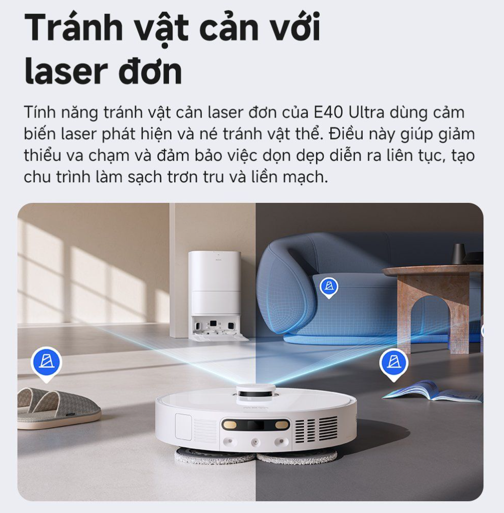 Trong thời đại bận rộn, việc sở hữu một robot hút bụi lau nhà thông minh là giải pháp tối ưu để tiết kiệm thời gian và công sức. Robot Hút Bụi Lau Sàn Mova E40 Ultra là dòng sản phẩm cao cấp, được trang bị nhiều công nghệ tiên tiến giúp làm sạch toàn diện, vận hành bền bỉ và mang lại sự tiện nghi vượt trội.