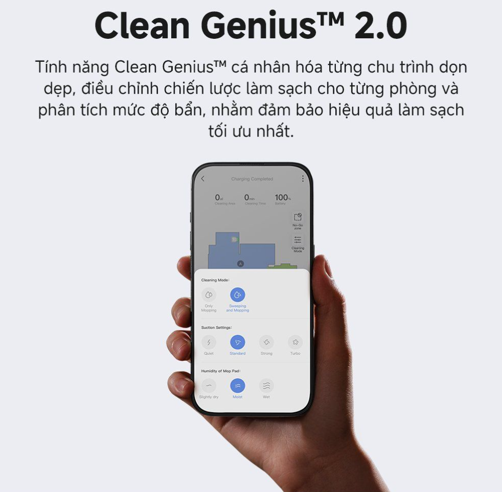 - Clean Genius™ 2.0: Tính năng cá nhân hóa dọn dẹp, học thói quen người dùng để tối ưu hiệu quả.