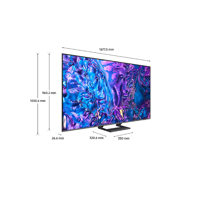 Smart Tivi QLED Samsung 4K 75 inch QA75Q70DAKXXV có thiết kế AirSlim hiện đại thu hút mọi ánh nhìn với đường viền mỏng thanh thoát cùng chân đế vững chắc giúp cố định tivi trên mặt phẳng. Với kích thước màn hình 55 inch tivi phù hợp cho những không gian có diện tích vừa và nhỏ như phòng khách, phòng ngủ,... từ đó tạo nên một tổng thể liền mạch, hài hòa trong không gian nhà bạn.