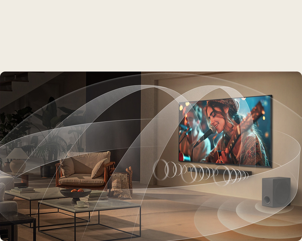 Chất lượng âm thanh cũng là yếu tố quan trọng giúp Smart Tivi LG Nanocell 43NANO80 4K 43 inch ghi điểm trong mắt người tiêu dùng. Cụ thể, công nghệ AI Sound Pro tạo hiệu ứng âm thanh vòm sống động, đưa người xem vào không gian giải trí chân thực.