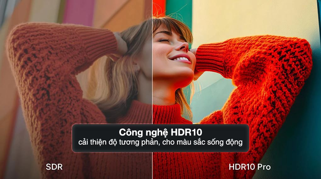 Độ phân giải 4K Ultra HD đi kèm tính năng 4K Super Upscaling nâng cấp nội dung từ nguồn thấp lên gần chuẩn 4K, đảm bảo hình ảnh luôn sắc nét. Với HDR10 và HLG cùng Dynamic Tone Mapping, tivi tái tạo độ tương phản tốt, hiển thị chi tiết rõ ràng ở cả vùng sáng lẫn vùng tối. Trong khi đó, công nghệ AI Brightness Control sẽ tự động điều chỉnh độ sáng dựa trên môi trường xung quanh, mang lại trải nghiệm thoải mái cho mắt trong mọi điều kiện ánh sáng.