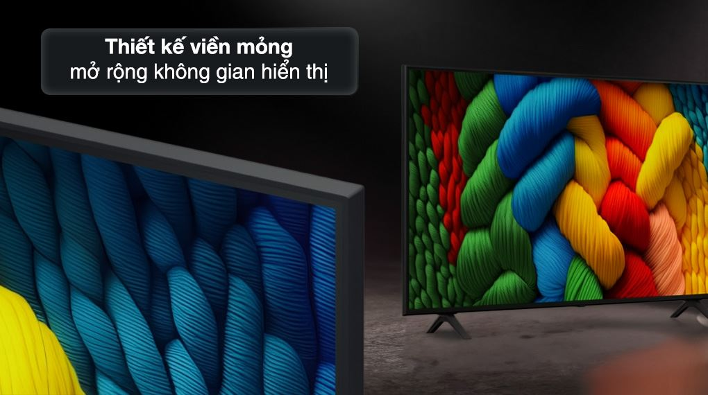 LG 50NANO80ASA sở hữu phong cách thiết kế hiện đại với màn hình LED nền kết hợp công nghệ NanoCell mang đến chất lượng hiển thị ấn tượng trong một khung hình gọn gàng. Viền tivi được hoàn thiện từ nhựa với độ mỏng vừa phải, tạo cảm giác thanh thoát và tinh tế khi đặt trong nhiều không gian nội thất khác nhau.