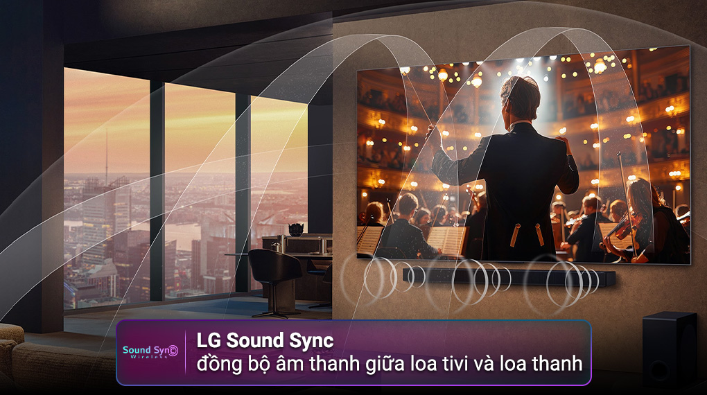 Ngoài ra, WOW Orchestra và LG Sound Sync cho phép kết hợp loa trong và loa thanh LG, mở rộng không gian âm thanh mạnh mẽ, trung thực hơn.