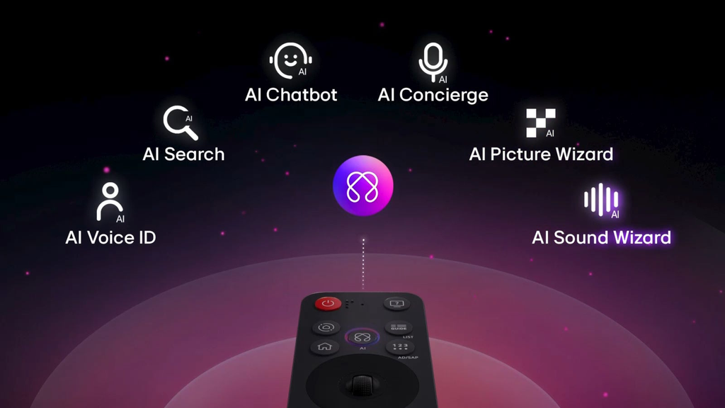 Điều khiển AI Magic Remote cho phép người dùng thao tác linh hoạt với các tính năng trỏ, cuộn hoặc ra lệnh bằng giọng nói. Nút AI mới giúp mở ra AI Concierge, cung cấp đề xuất cá nhân hóa dựa trên thói quen xem và lịch sử tìm kiếm. Các tính năng AI khác như AI Voice ID, AI Chatbot, AI Search, AI Picture Wizard mang đến trải nghiệm cá nhân hóa tuyệt vời, từ việc đề xuất nội dung cho đến tinh chỉnh hình ảnh và âm thanh theo sở thích người dùng.